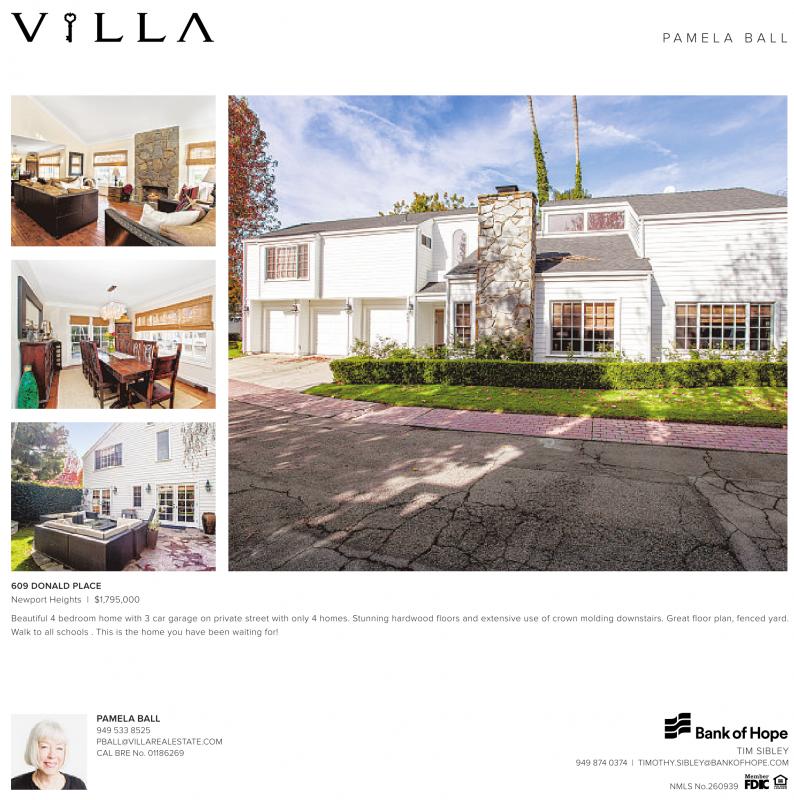 PAMELA BALL 949 533 8525 PBALL@VILLAREALESTATE.COM CAL BRE No. 01186269