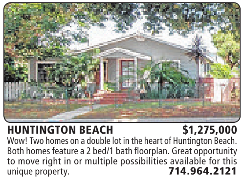 HUNTINGTON BEACH $1,275,000 Wow! Twohomes on adouble lotinthe heartofHuntington Beach. Both homesfeature a2bed/1 bath floorplan. Greatopportunity to move right in or multiple possibilities available for this unique property. 714.964.2121