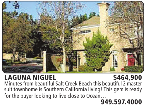 LAGUNA NIGUEL $464,900 Minutesfrom beautifulSaltCreek Beachthis beautiful2master suittownhome is SouthernCalifornialiving!Thisgem is ready forthe buyerlooking to live close to Ocean… 949.597.4000