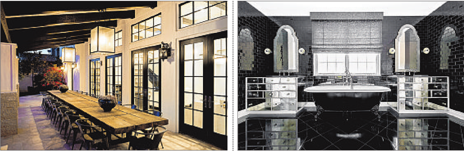 Ebony-stained floors, designer tile work and crystal hardware are among the new-look details. One of the six bedrooms was refashioned as a “glam room.” Separate walk-in and accessory closets highlight the redone master suite.