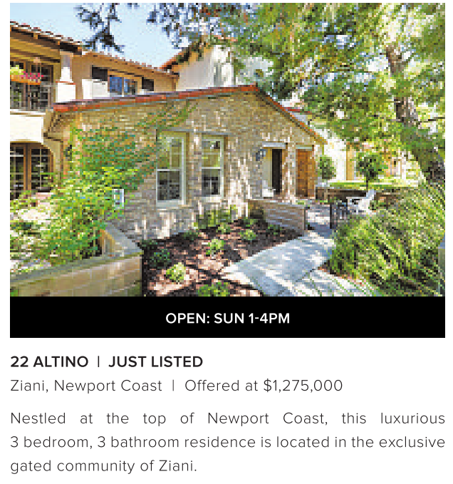22 ALTINO | JUST LISTED Ziani, Newport Coast | Offered at $1,275,000