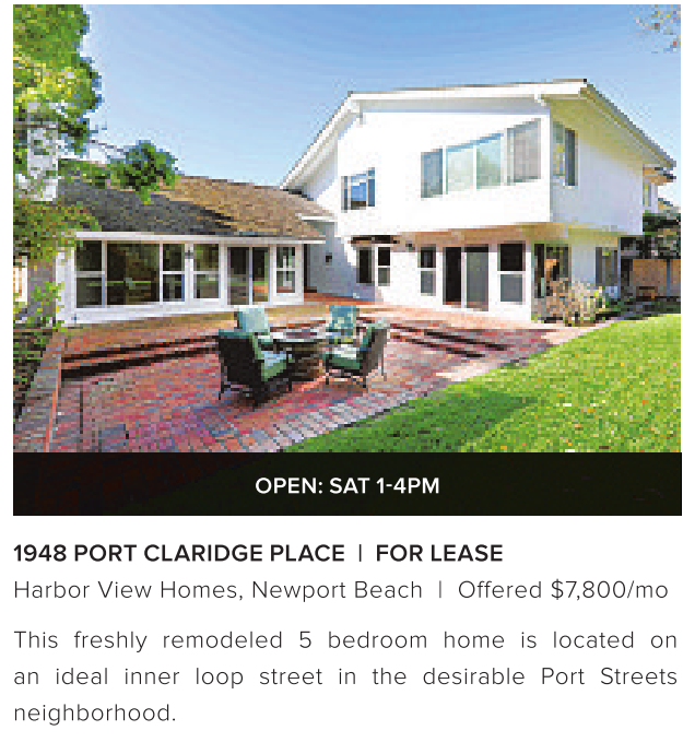 1948 PORT CLARIDGE PLACE | FOR LEASE Harbor View Homes, Newport Beach | Offered $7,800/mo