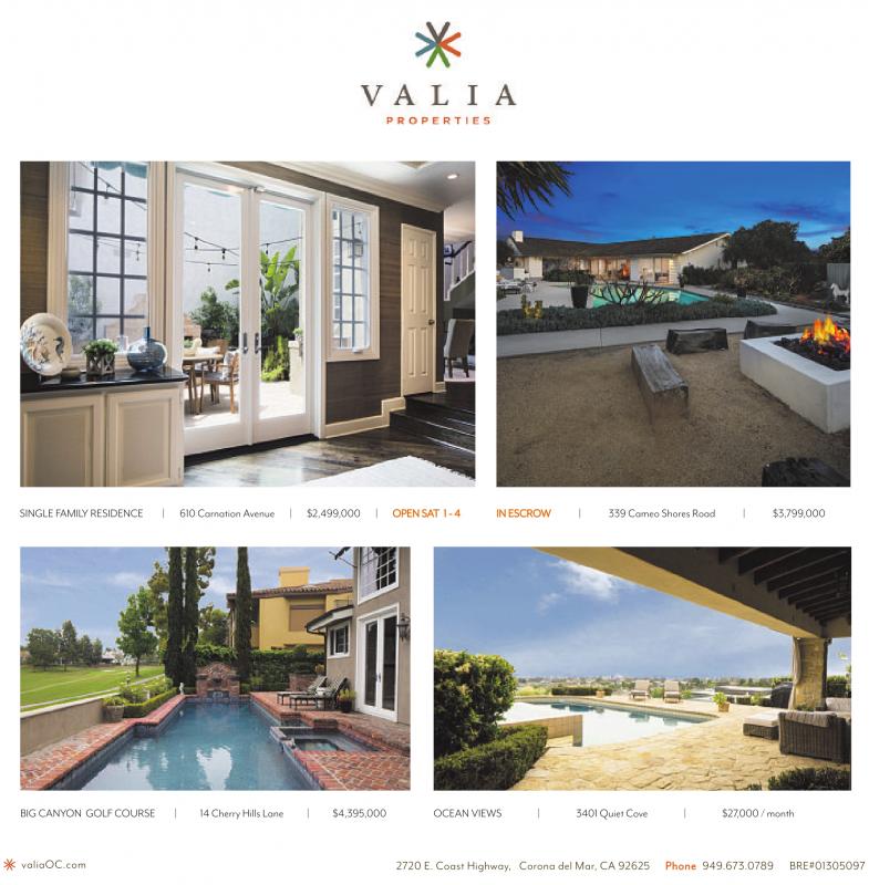 valiaOC.com 2720 E. Coast Highway, Corona del Mar, CA 92625 Phone 949.673.0789 BRE#01305097