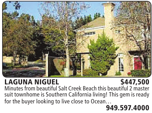 LAGUNA NIGUEL $447,500 Minutesfrom beautifulSaltCreek Beachthis beautiful2master suittownhome is SouthernCalifornialiving!Thisgem is ready forthe buyerlooking to live close to Ocean… 949.597.4000