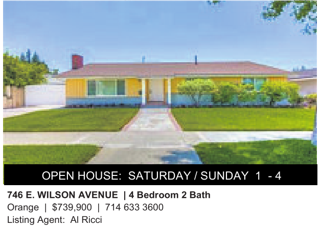 746 E.WILSON AVENUE |4Bedroom 2Bath Orange | $739,900 | 714 633 3600 Listing Agent: AlRicci