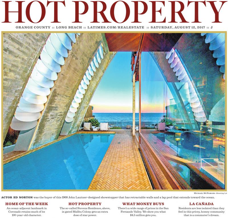 ACTOR ED NORTON was the buyer of this 1968 John Lautner-designed showstopper that has retractable walls and a lap pool that extends toward the ocean.