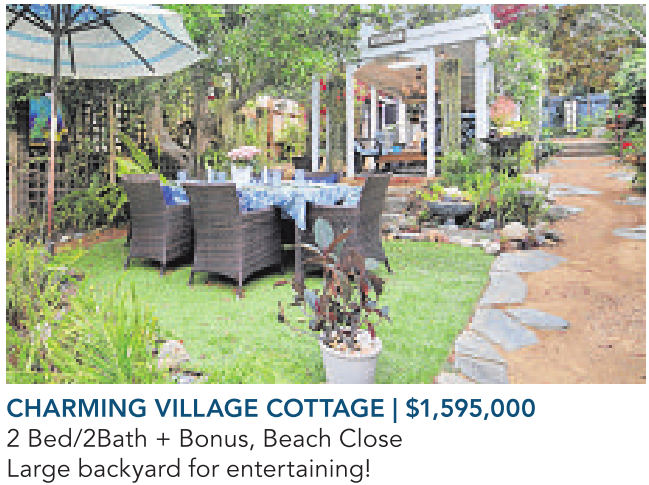 CHARMING VILLAGE COTTAGE | $1,595,000 2 Bed/2Bath + Bonus, Beach Close Large backyard for entertaining!