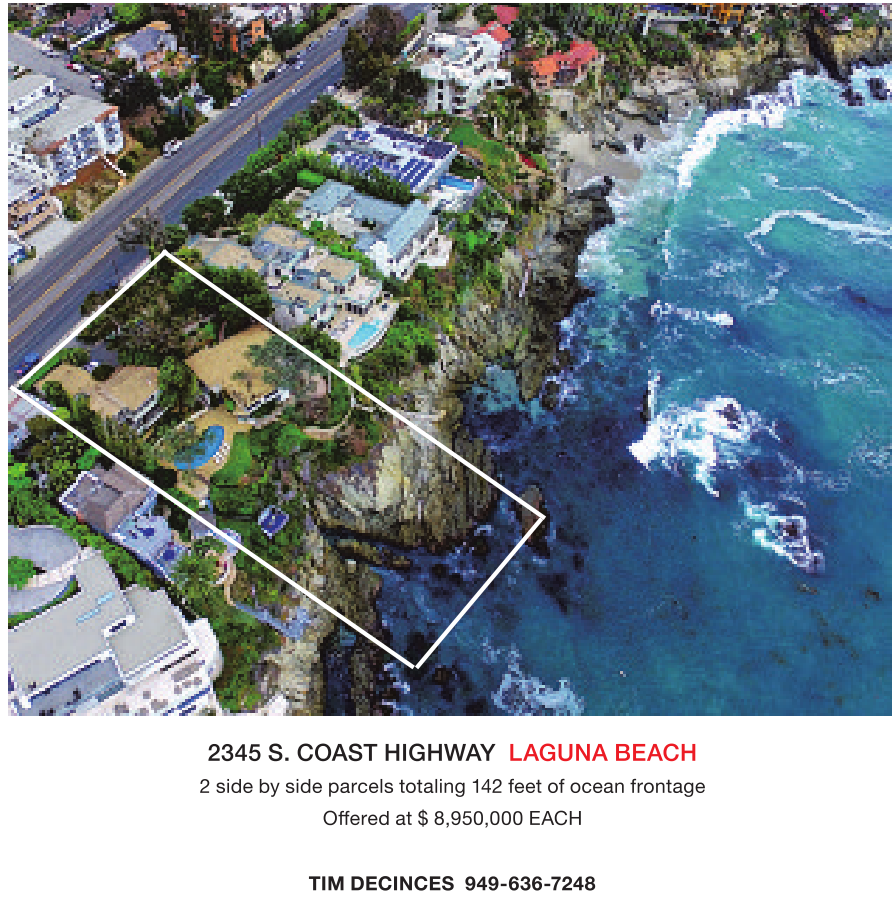 2345 S. COAST HIGHWAY LAGUNA BEACH 2side byside parcels totaling 142 feet of ocean frontage Offered at $8,950,000 EACH