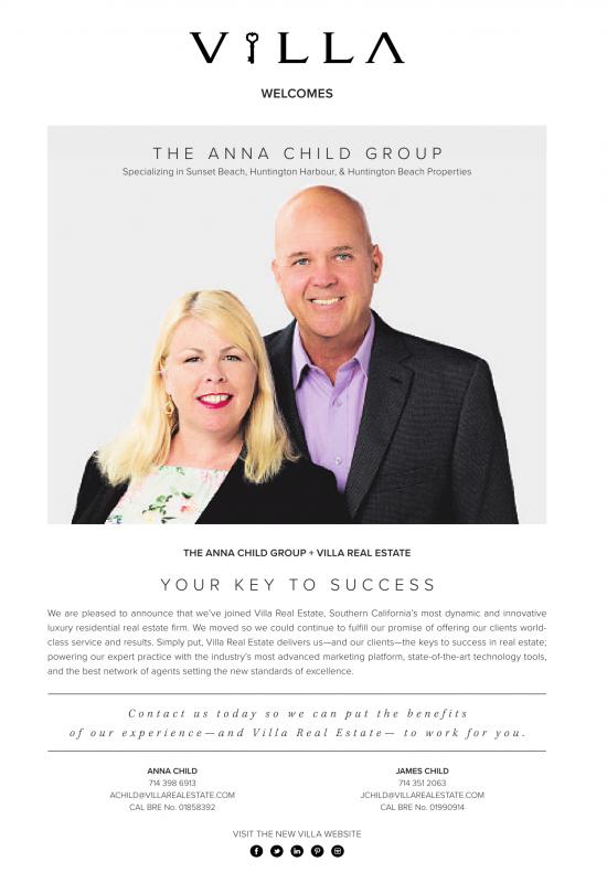 ANNA CHILD 714 398 6913 ACHILD@VILLAREALESTATE.COM CAL BRE No. 01858392
