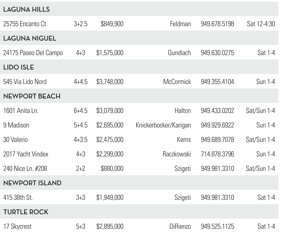 17 Skycrest 5+3 $2,895,000 DiRienzo 949.525.1125 Sat 1-4