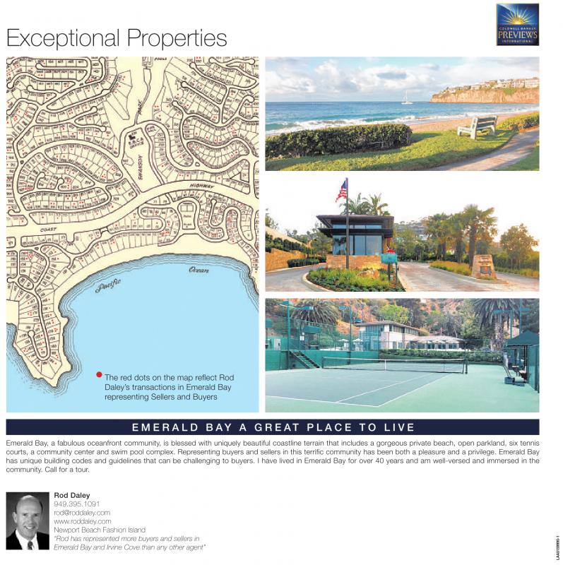 Rod Daley 949.395.1091 rod@roddaley.com www.roddaley.com Newport Beach Fashion Island “Rod has represented more buyers and sellers in Emerald Bay and Irvine Cove than any other agent”