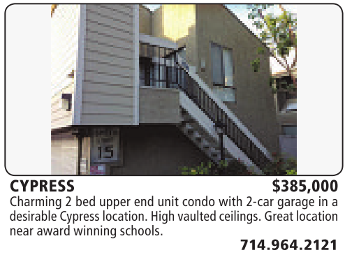 CYPRESS $385,000 Charming 2bed upper end unit condo with 2-car garage ina desirable Cypress location. Highvaulted ceilings.Great location near awardwinningschools.