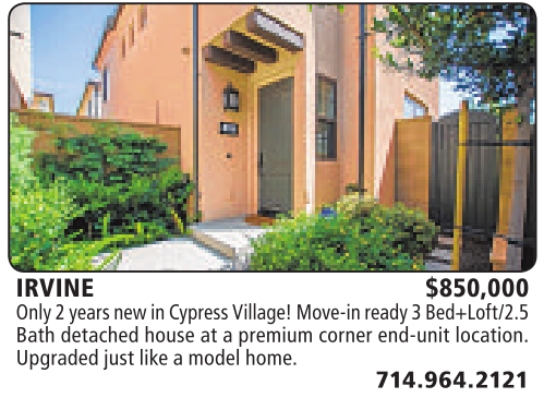 IRVINE $850,000 Only 2years new in Cypress Village!Move-inready 3Bed+Loft/2.5 Bath detached house at apremium corner end-unit location. Upgraded just like amodelhome.