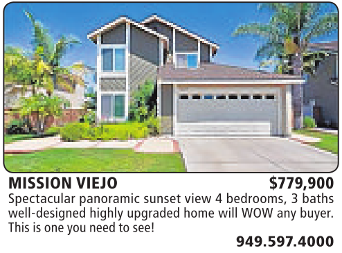 MISSION VIEJO $779,900 Spectacular panoramic sunset view 4 bedrooms, 3 baths well-designed highly upgraded home will WOW any buyer. This is oneyou need to see!