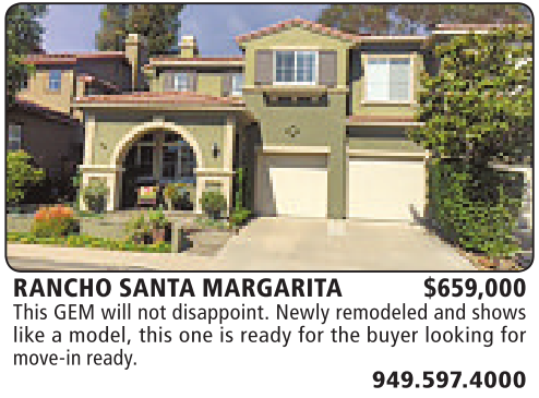 RANCHO SANTA MARGARITA $659,000 This GEM will not disappoint. Newly remodeled and shows like a model, this one is ready for the buyer looking for move-inready.