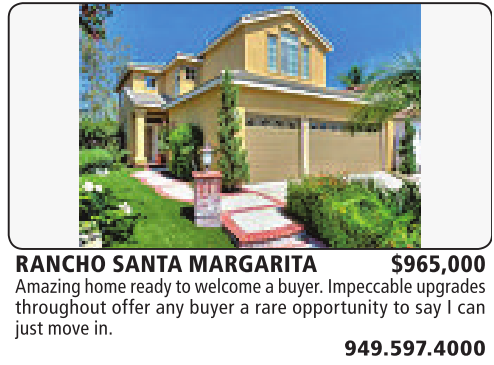 RANCHO SANTA MARGARITA $965,000 Amazinghome readytowelcome abuyer.Impeccableupgrades throughout offer any buyer arare opportunity to say I can just move in. 949.597.4000