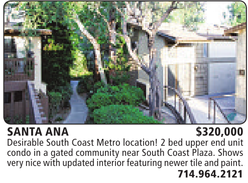 SANTA ANA $320,000 Desirable South Coast Metro location! 2bed upper end unit condo in agated community near South Coast Plaza. Shows very nicewithupdated interior featuringnewer tile and paint.