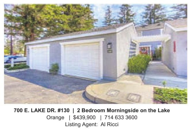 700 E.LAKE DR. #130 | 2 Bedroom Morningside on the Lake Orange | $439,900 | 714 633 3600 Listing Agent: AlRicci