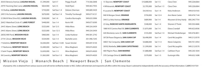 30355 Benecia Avenue, LAGUNA NIGUEL $1,399,000 Sat 4-7 Peggy Knauft 714.566.5848