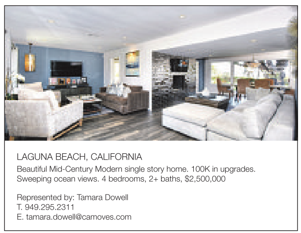 LAGUNA BEACH, CALIFORNIA Beautiful Mid-Century Modern single story home. 100K in upgrades. Sweeping ocean views. 4bedrooms, 2+ baths, $2,500,000