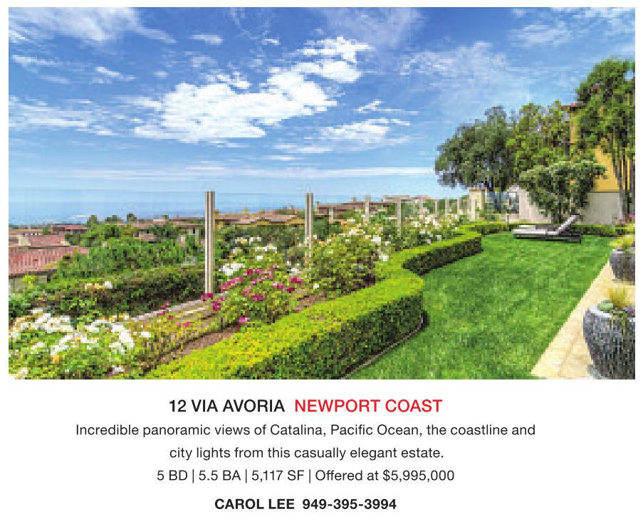 12 VIA AVORIA NEWPORT COAST Incredible panoramic views ofCatalina, Pacific Ocean, the coastline and city lights from this casually elegant estate.