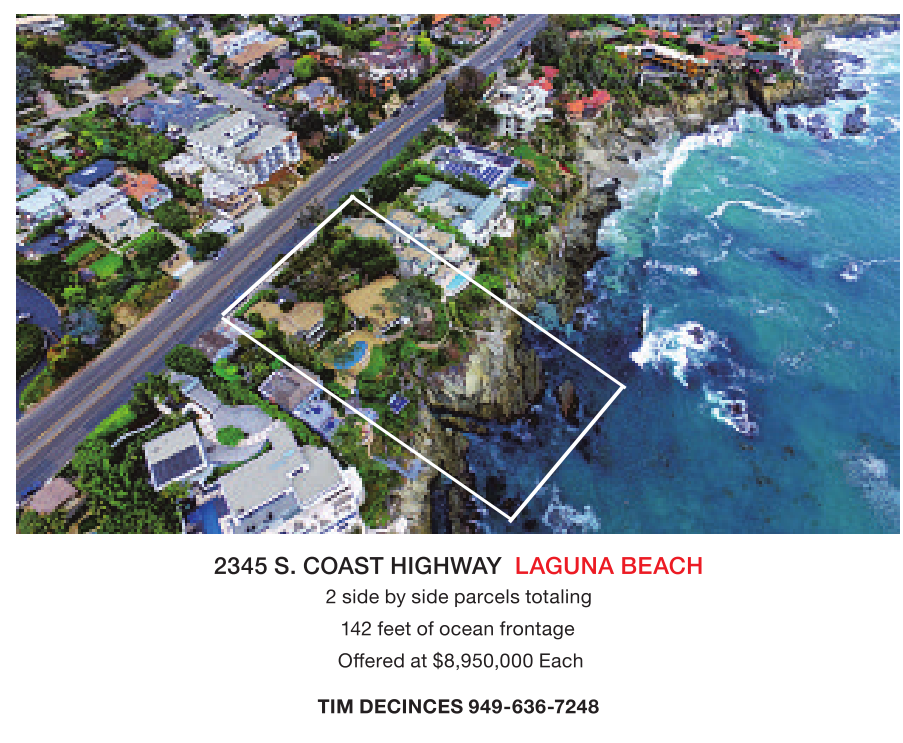 2345 S. COAST HIGHWAY LAGUNA BEACH 2side by side parcels totaling 142 feet ofocean frontage Offered at $8,950,000 Each