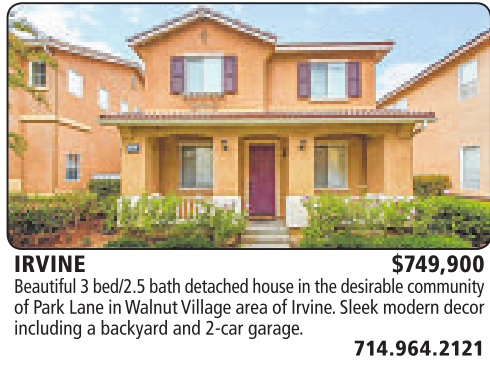 IRVINE $749,900 Beautiful 3bed/2.5 bath detached house in the desirable community of Park Lane in WalnutVillage areaofIrvine.Sleek moderndecor including abackyardand 2-car garage.