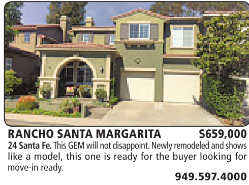 RANCHO SANTA MARGARITA $659,000 24 SantaFe. This GEM will not disappoint. Newly remodeled and shows like a model, this one is ready for the buyer looking for move-in ready.