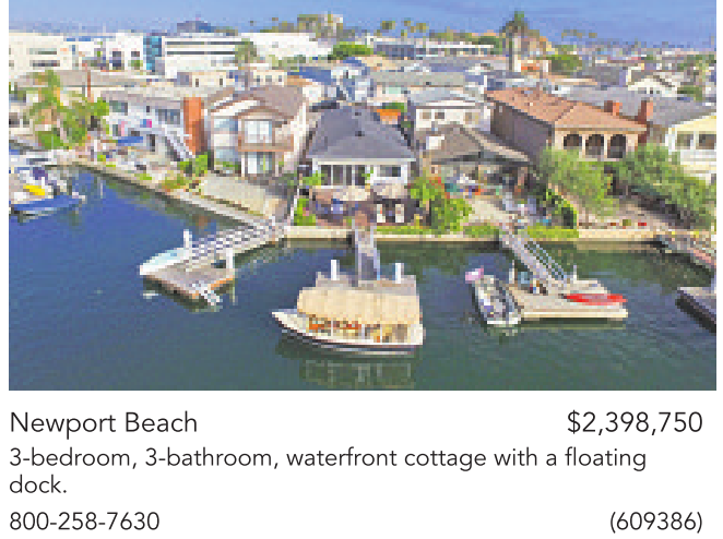Newport Beach $2,398,750 3-bedroom, 3-bathroom, waterfront cottage with a floating dock.