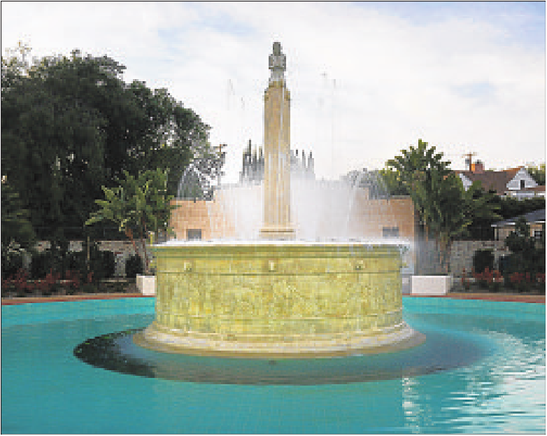 On the corner of Wilshire and Santa Monica boulevards, the city would build a memorial to the original inhabitants and their pool: a statue of a praying Tongva atop a water fountain that was illuminated each night by a multicolored electric light show.