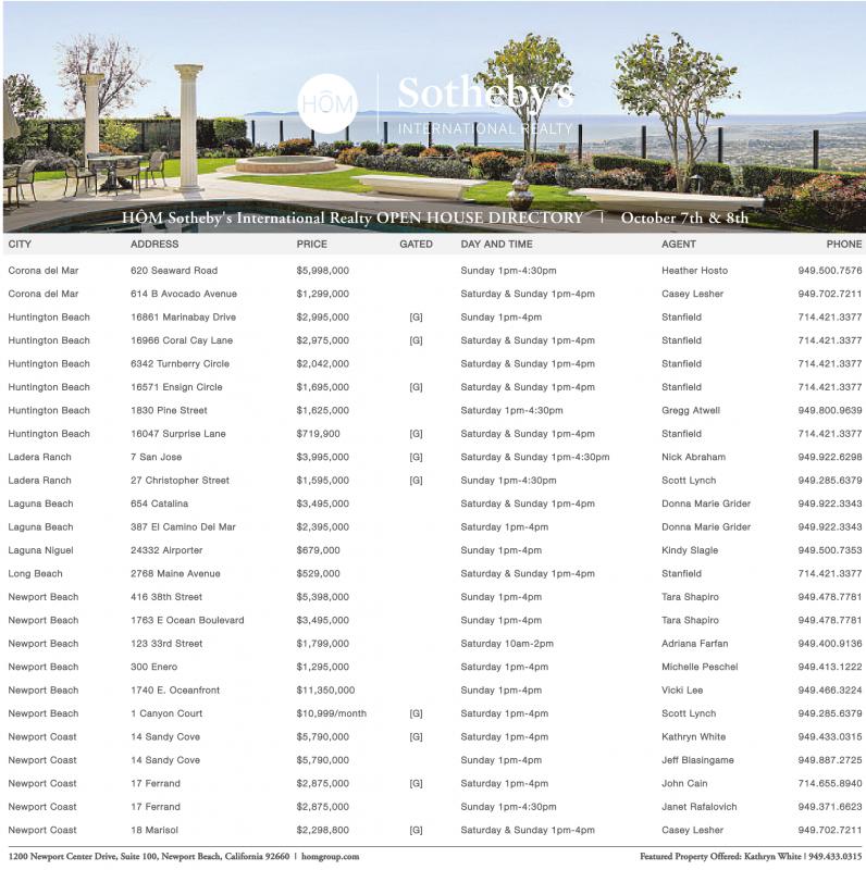 HÔM Sotheby's International Realty OPEN HOUSE DIRECTORY | October 7th & 8th