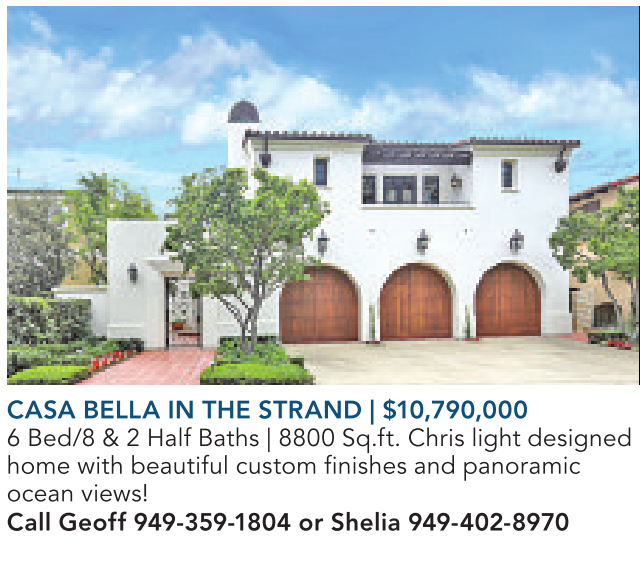 CASA BELLA IN THE STRAND | $10,790,000 6 Bed/8 & 2 Half Baths | 8800 Sq.ft. Chris light designed home with beautiful custom finishes and panoramic ocean views! Call Geoff 949-359-1804 or Shelia 949-402-8970