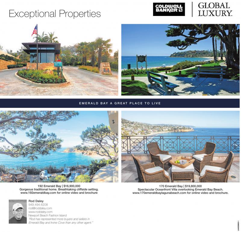 Rod Daley 949.494.6208 rod@roddaley.com www.roddaley.com Newport Beach Fashion Island “Rod has represented more buyers and sellers in Emerald Bay and Irvine Cove than any other agent.”