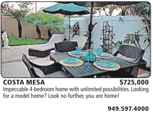 COSTA MESA $725,000 Impeccable 4-bedroom home with unlimited possibilities.Looking for amodel home? Look no further,you are home!