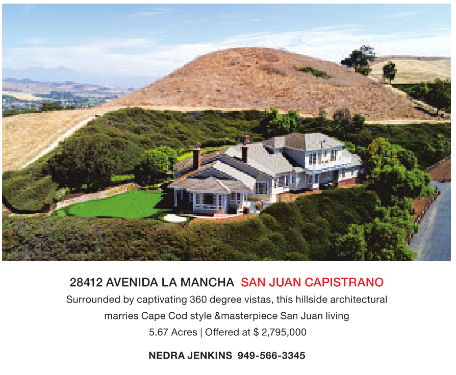 28412 AVENIDA LA MANCHA SAN JUAN CAPISTRANO Surrounded bycaptivating 360 degree vistas, this hillside architectural marries Cape Cod style &masterpiece San Juan living 5.67 Acres |Offered at $2,795,000