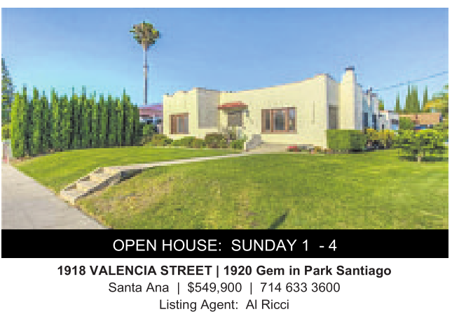 OPEN HOUSE: SUNDAY 1 - 4 1918 VALENCIA STREET |1920 Gem inPark Santiago Santa Ana | $549,900 | 714 633 3600 Listing Agent: AlRicci