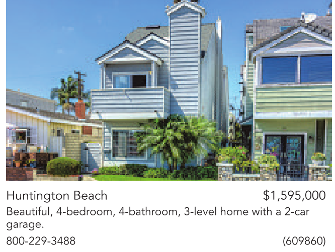 Huntington Beach $1,595,000 Beautiful, 4-bedroom, 4-bathroom, 3-level home with a 2-car garage.