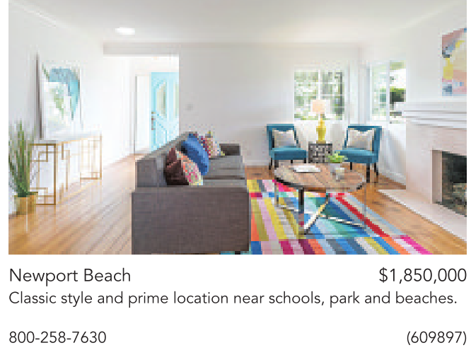 Newport Beach $1,850,000 Classic style and prime location near schools, park and beaches.