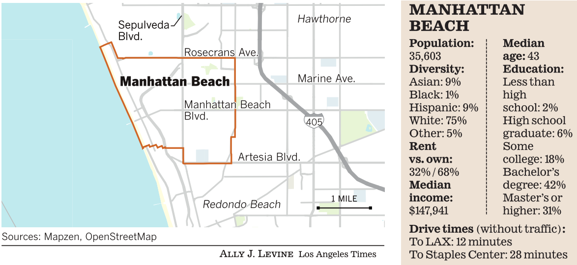Whereas its neighbors, such as Hermosa Beach and Redondo Beach, function as beach towns, Stroyke said, Manhattan Beach is more of a beach city, with commuters from the finance and tech industries mingling with retirees and families.