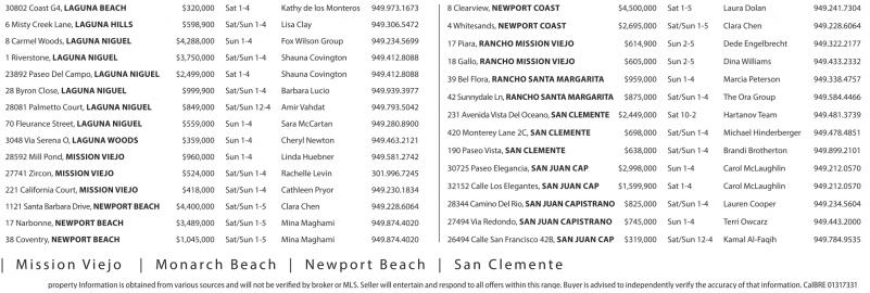 27494 ViaRedondo, SAN JUAN CAPISTRANO $745,000 Sun 1-4 Terri Owcarz 949.443.2000