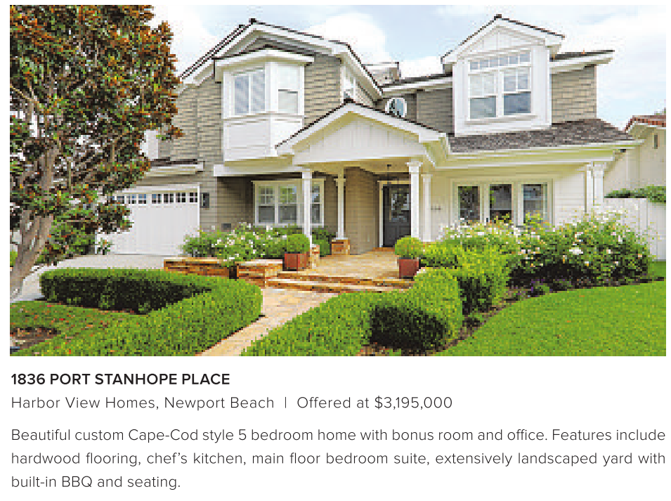 1836 PORT STANHOPE PLACE Harbor View Homes, Newport Beach | Offered at $3,195,000