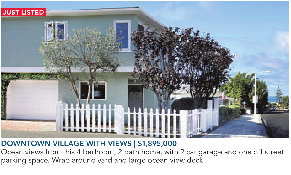 DOWNTOWN VILLAGE WITH VIEWS | $1,895,000 Ocean views from this 4 bedroom, 2 bath home, with 2 car garage and one off street parking space. Wrap around yard and large ocean view deck.