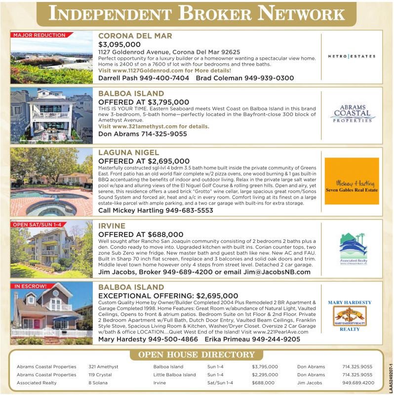 Abrams Coastal Properties 119 Crystal Little Balboa Island Sun 1-4 $2,295,000 Don Abrams 714.325.9055