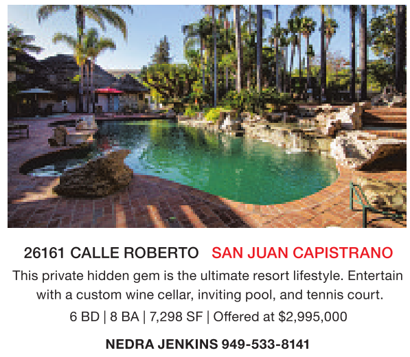 26161 CALLE ROBERTO SAN JUAN CAPISTRANO This private hidden gem isthe ultimate resort lifestyle. Entertain with acustom wine cellar, inviting pool, and tennis court.