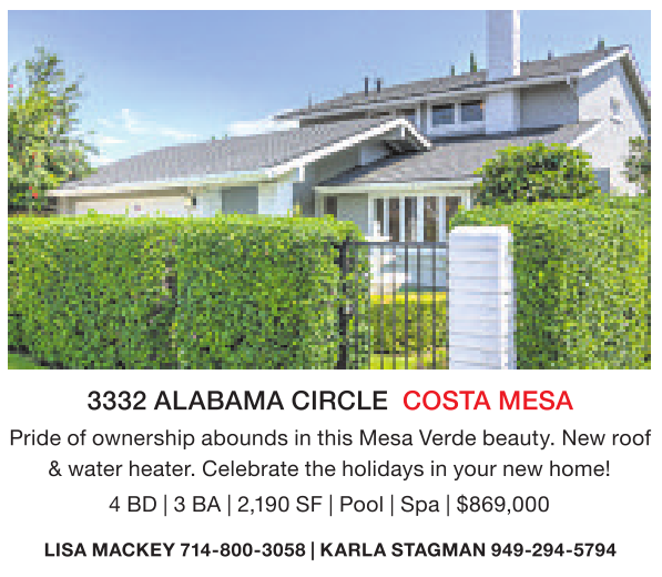 LISA MACKEY 714-800-3058 |KARLA STAGMAN 949-294-5794