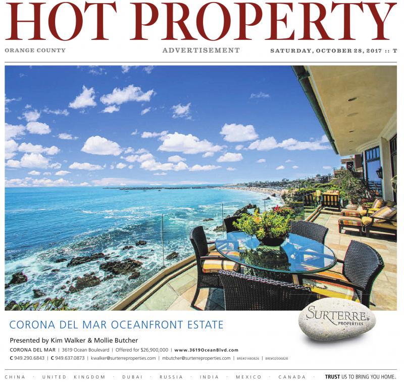 SATURDAY, OCTOBER 28, 2017 :: T BRE#01778230 CORONA DEL MAR OCEANFRONT ESTATE Presented by Kim Walker & Mollie Butcher CORONA DEL MAR | 3619 Ocean Boulevard | Offered for $26,900,000 | www.3619OceanBlvd.com C 949.290.6843 | C 949.637.0873 | kwalker@surterreproperties.com | mbutcher@surterreproperties.com | BRE#01480826 | BRE#02006828 C H I N A U N I T E D K I N G D O M D U B A I R U S S I A I N D I A M E X I C O C A N A D A