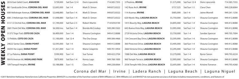 861 SandcastleDrive, CORONA DEL MAR $2,695,000 Sat 1-4 Mark D. Simon 949.872.8322