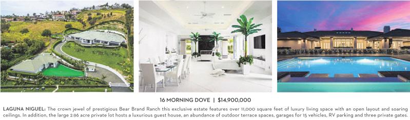 LAGUNA NIGUEL: The crown jewel of prestigious Bear Brand Ranch this exclusive estate features over 11,000 square feet of luxury living space with an open layout and soaring ceilings. In addition, the large 2.96 acre private lot hosts a luxurious guest house, an abundance of outdoor terrace spaces, garages for 15 vehicles, RV parking and three private gates.