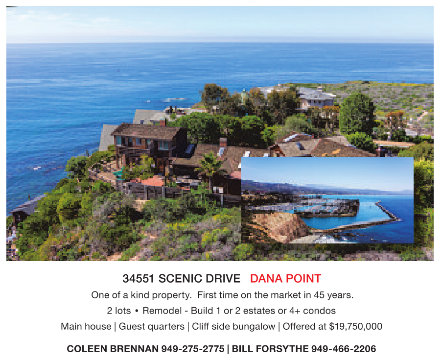 34551 SCENIC DRIVE DANA POINT One ofakind property. First time on the market in 45 years.