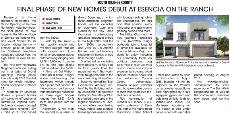 Thousands of home shoppers celebrated the Grand Opening of the new NorthWalk Neighborhoods, the final phase of new homes in the hillside village of Esencia on Rancho Mission Viejo! Named for its location along the northernmost point of Esencia, the NorthWalk Neighborhoods are priced from the high $300s to over $1 million.